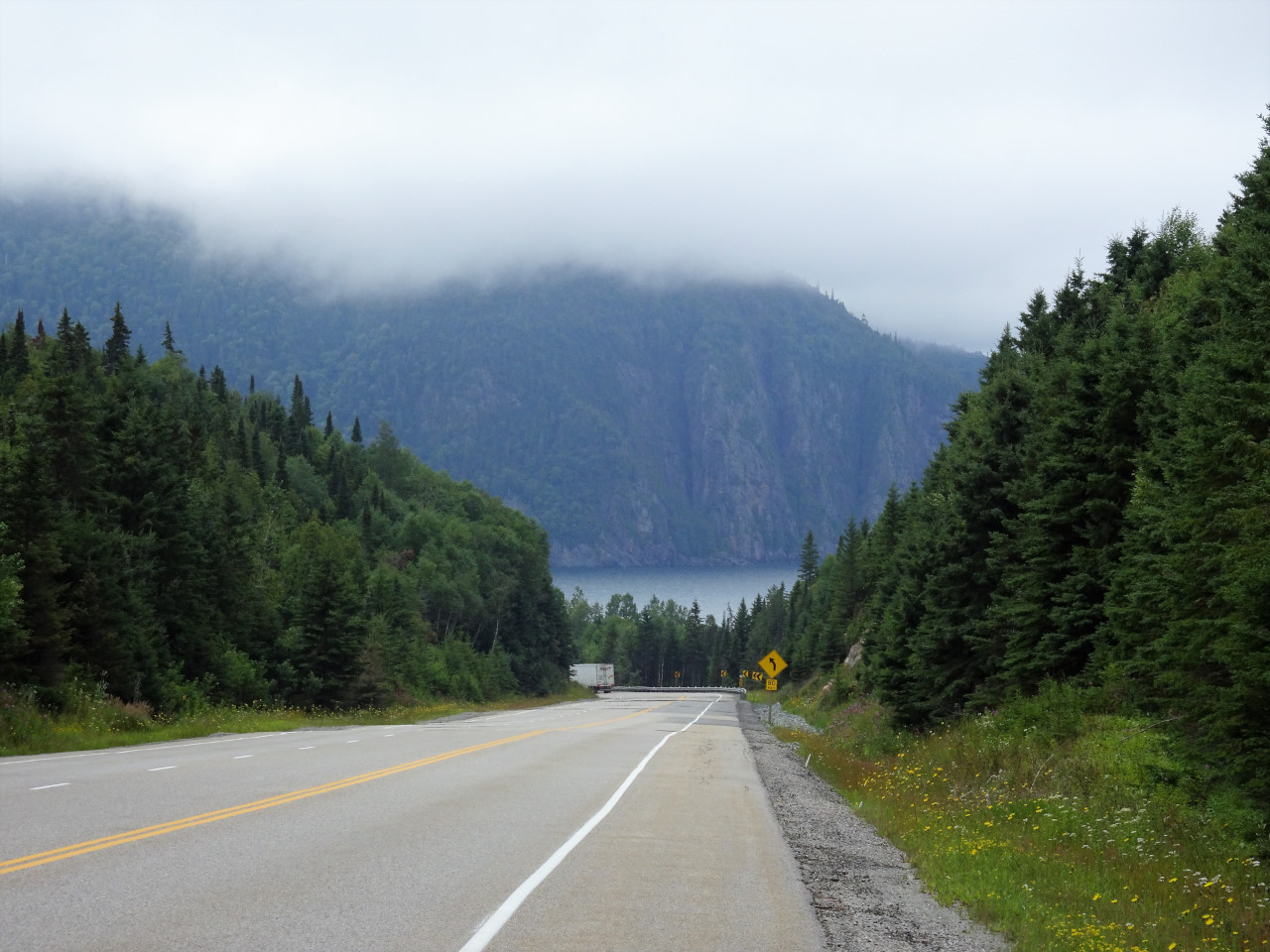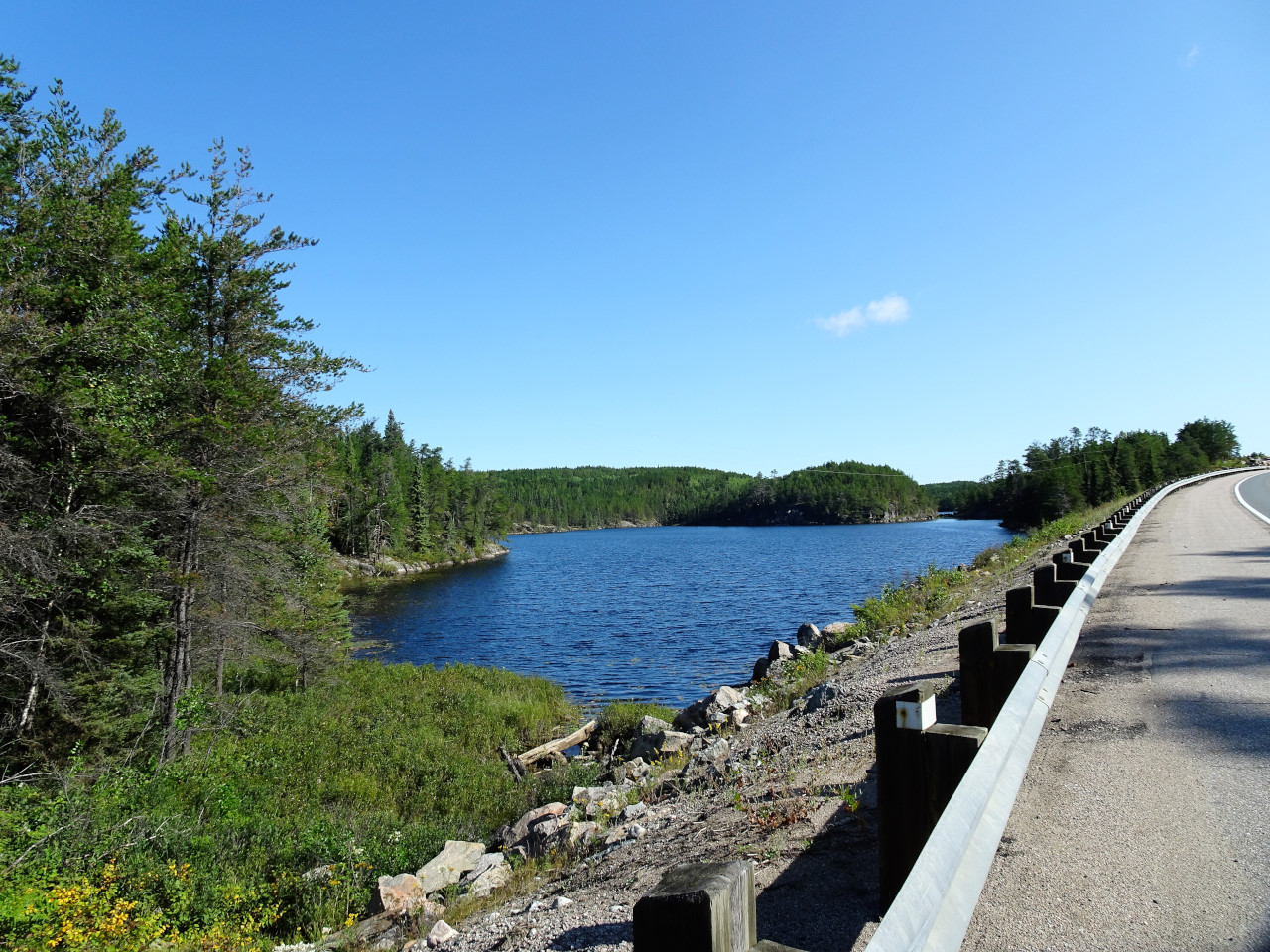 It’s a nice crisp 12’c as I head off – road is damp but most of the time I have a dry line due to the traffic ahead of me. After 200 klms I cross the border into Ontario and the scenery changes from farming land back into forests and magnificent lakes right beside the highway;