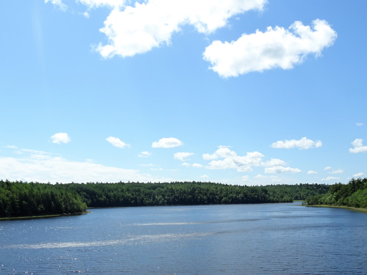 I keep motoring and cross the border into Nova Scotia. Immediately I am riding next to a wind farm and I could see that the blades were spinning quite quickly – I soon found out why as I hit side winds that were nearly blowing me off the bike. This settled down once I got past the wind farm and back riding in between forest trees again.