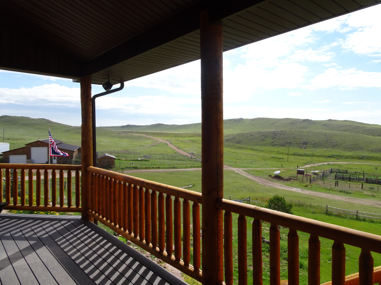 The Ranch is located about 30klms out of Cheyenne on 1300 acres of land. Eric and Deb own the property and live in the house but the actual farm land is leased out as Eric is retired. Deb works for homeland security and is nearly over the line for retirement. They had to re build the house from scratch after their old one was destroyed by fire. The house itself is magnificent with great big rooms and a long veranda that you can sit on and stare at the scenery.