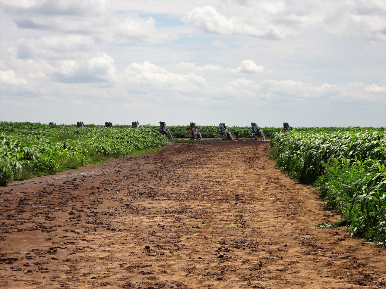 Just a mile away is the public art piece that was created in 1974. Cadillac’s were buried in the ground to highlight their tail fins. People who stop and visit the piece are encouraged to paint graffiti on them. This piece was featured in Billy Connolly’s Route 66 documentary and I was really excited in anticipation in seeing it. To be honest what I found left me underwhelmed in that it looked like a rubbish dump;